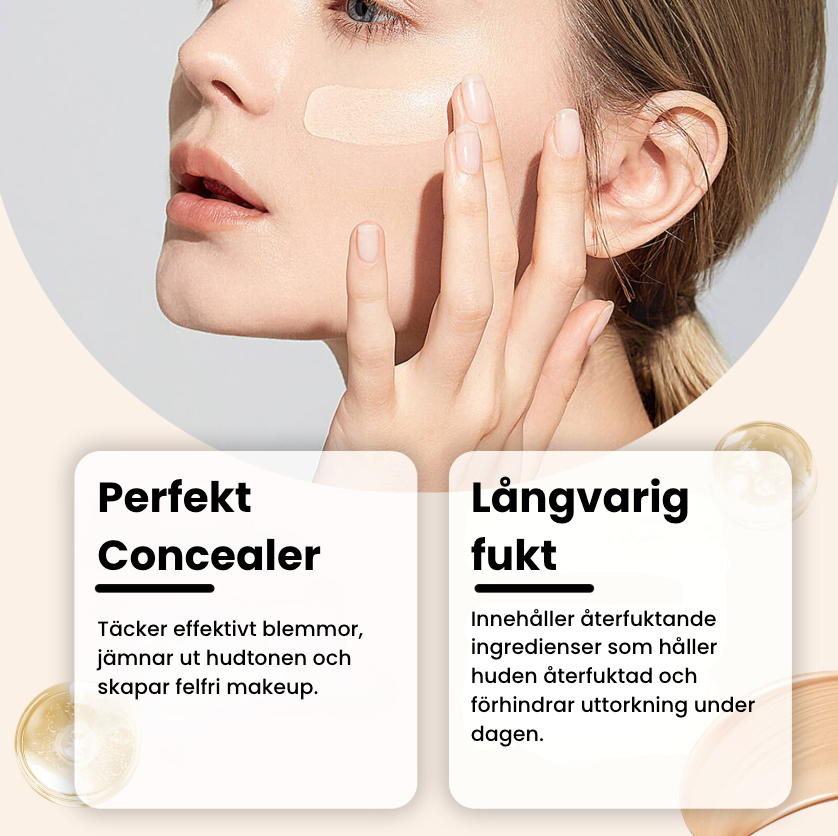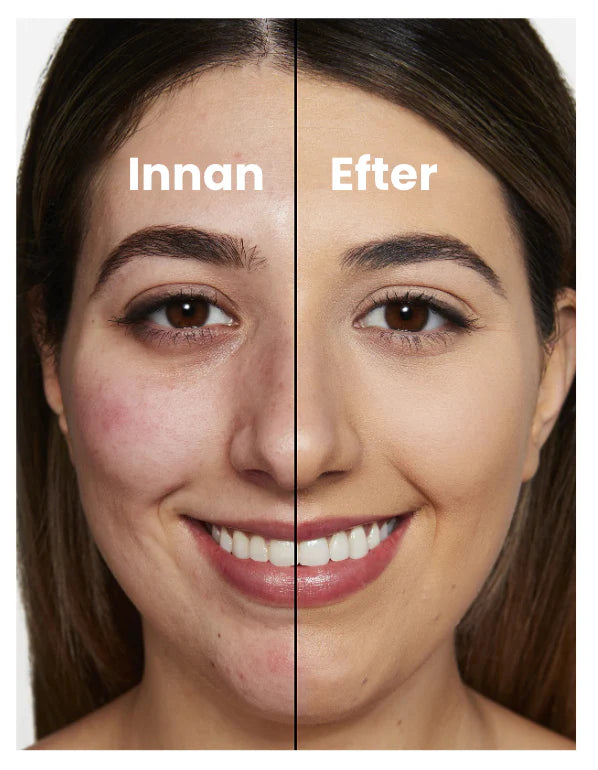 Den smälter in i huden och täcker allt du vill dölja finnar, rodnad, mörka ringar men känns ändå lätt och osynlig. Perfekt för dig som vill se ut som dig själv, fast med lite mer lyster och tryggare blick i spegeln.